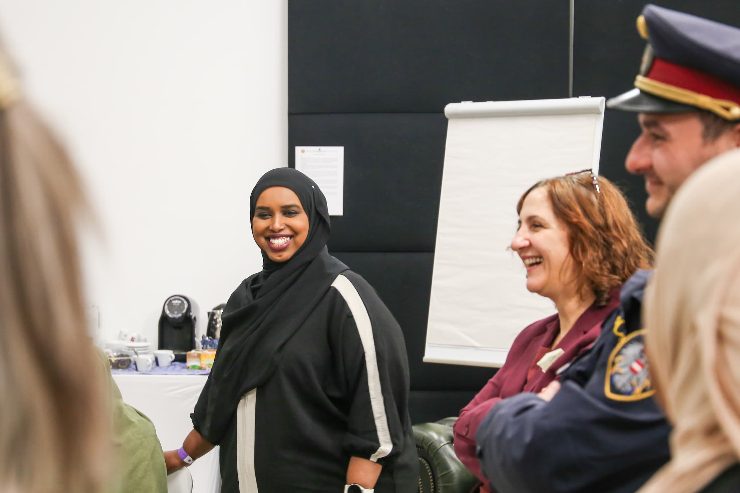 75 Frauen aus arabischen, afghanischen, tschetschenischen, somalischen und türkischen Communities in Wien setzten sich mit Demokratie, Rechtsstaat und gesellschaftlicher Teilhabe auseinander. Begleitet von Moderatorinnen, Sozialassistentinnen der NACHBARINNEN und einem erfahrenen Polizisten erarbeiteten sie ihre Perspektiven in fünf Workshops – praxisnah, dialogisch und kreativ.