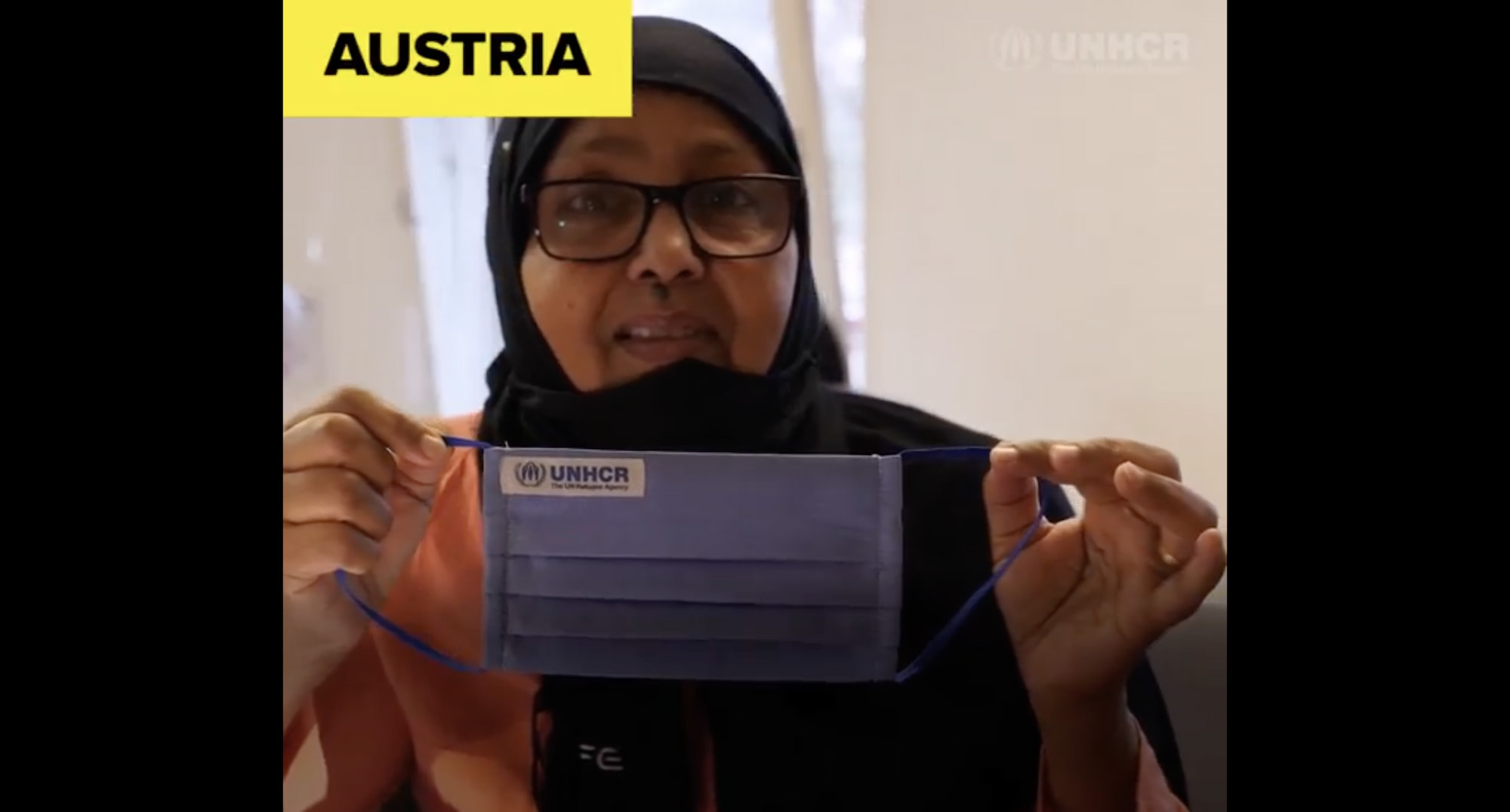 Auf der ganzen Welt haben sich Menschen mit Fluchterfahrung dem Kampf gegen COVID-19 angeschlossen, um uns allen zu helfen uns vor einer Ansteckung mit einer Maske zu schützen. Auch unsere Näherinnen in der Nähwerkstatt arbeiten unermüdlich daran allen Menschen den Zugang zu Masken zu ermöglichen.